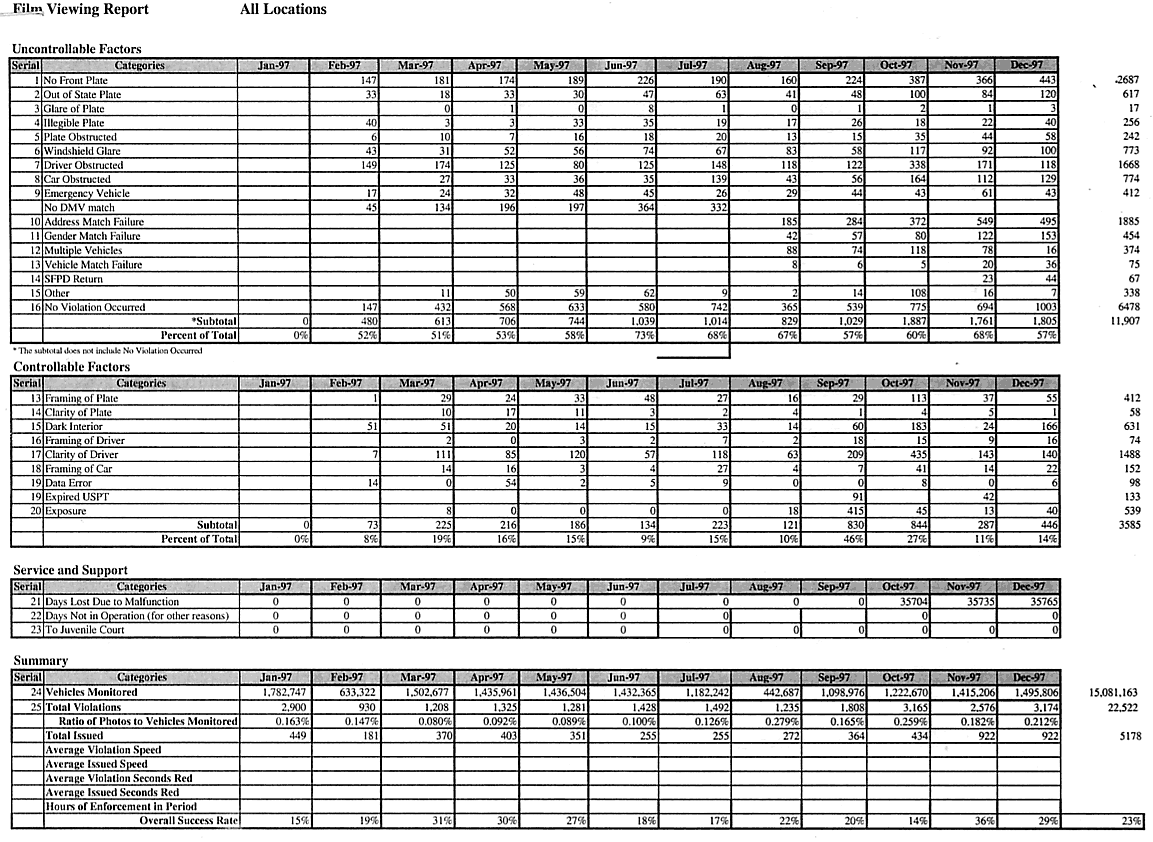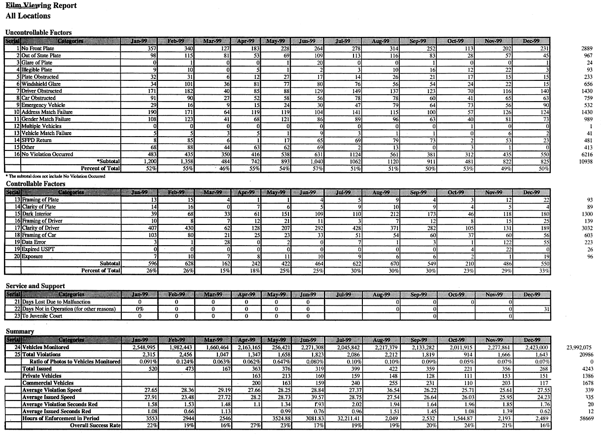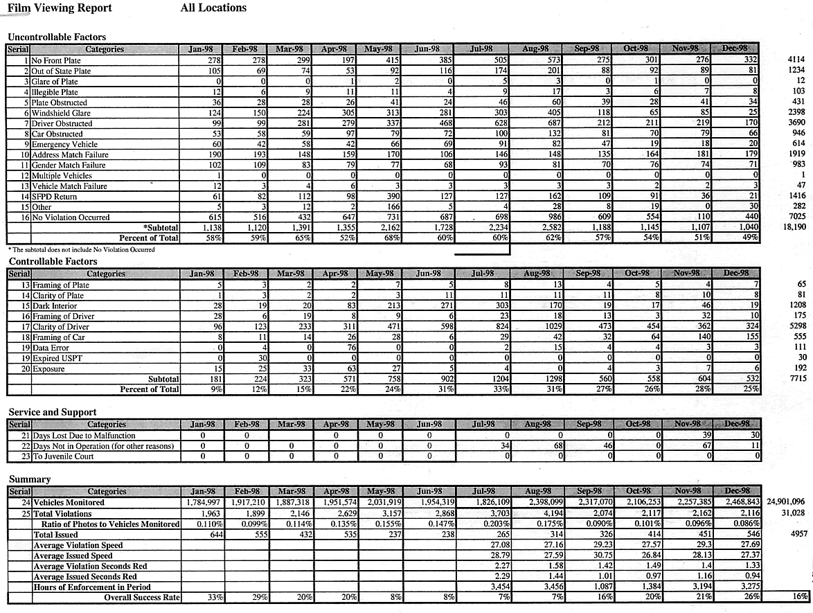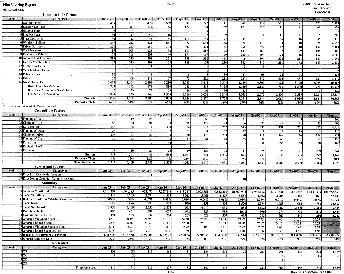 the Camera Towns page City of San Francisco Documents These are the annual system-wide summaries supplied to the City by their camera vendor. New 10-31-04